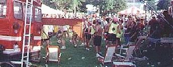 Although RAGBRAI didn't go through our little town, the community welcomed anyone who stopped by. On Friday, July 30, 1999, downtown Dundee was all a bustle with riders, staff, and vehicles that accompanied them. There was plenty of food, drinks and potties to go around. We were happy to see everyone who stopped by and the experience will definitely be remembered for years to come. Here are a few photos of the day.